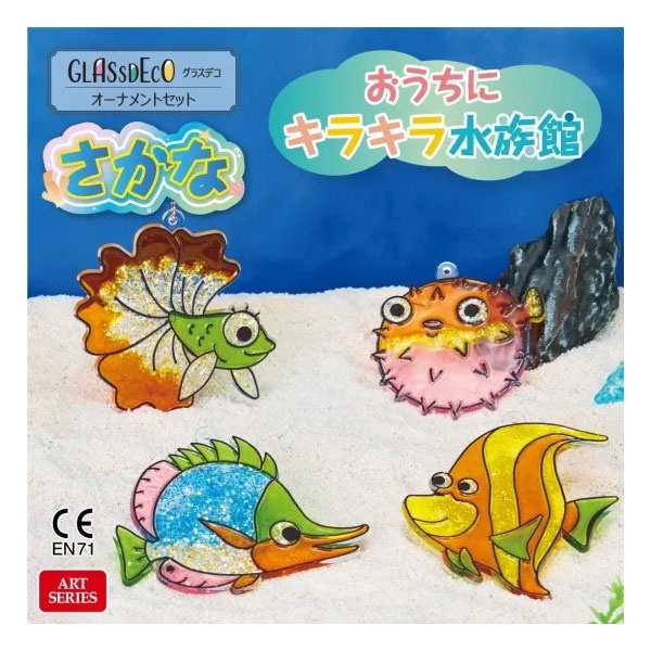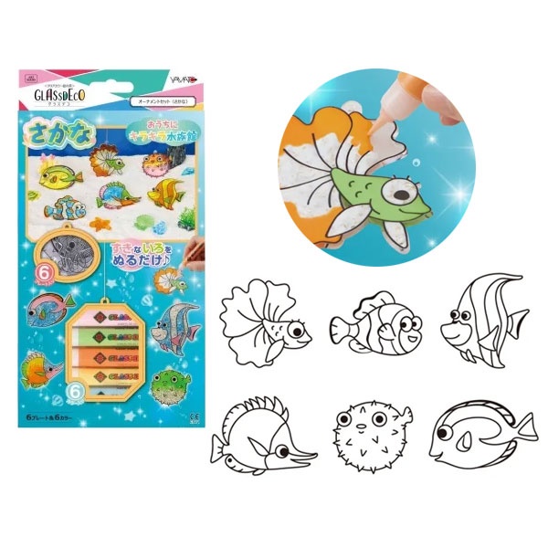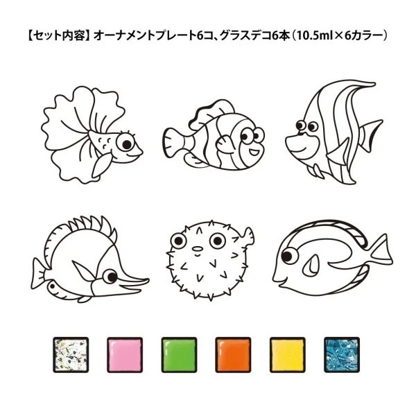 グラスデコが6カラーとオーナメントプレートが6コ入っており、塗り絵感覚で簡単に作れます!
