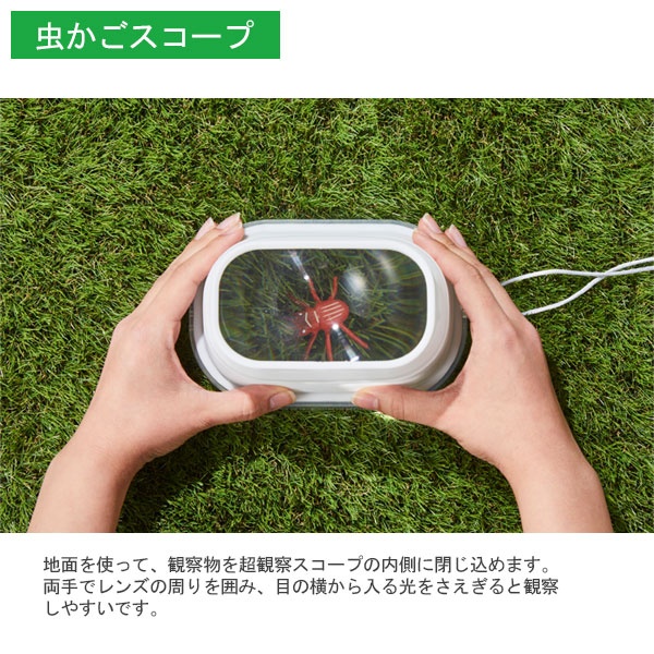 〇無視などの観察物の上からかぶせて観察する「虫かごスコープ」