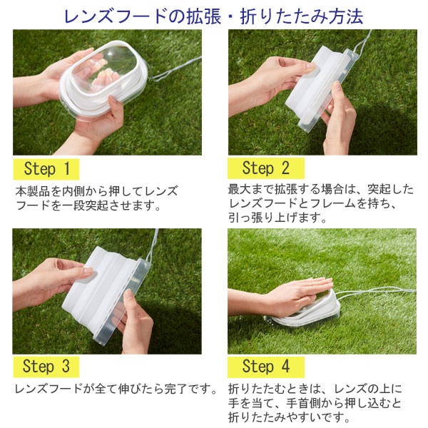 レンズフードの拡張・折りたたみ方法