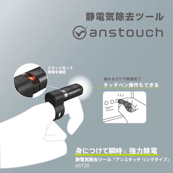 「アンスタッチ リングタイプ」は常に身に着けられるので、取り出す動作無しに除電が可能です。