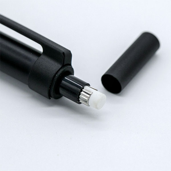 芯とガイドパイプを口金内部に収納することで、落下時の衝撃から保護し、胸ポケットなどに入れたときのけがも防ぎます。