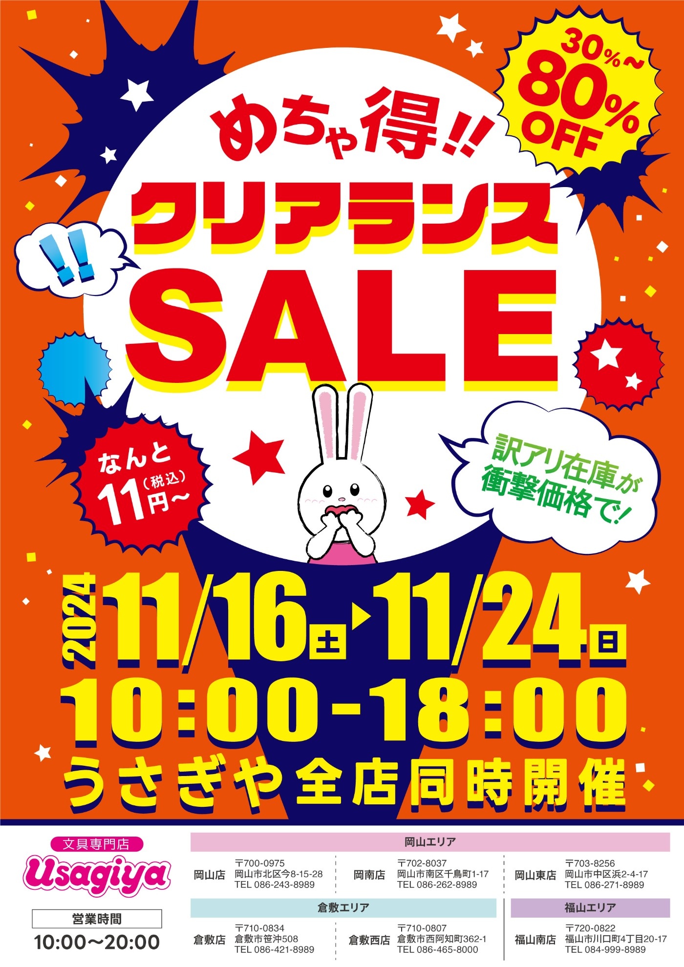 11月16日(土)〜24日(日) うさぎや全店