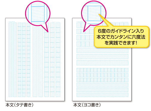 一行を三分割するラインと、行と同じ間隔の縦ラインにより文頭を揃えたり作図しやすかったり、行間をつくりやすい構造になっています。方眼タイプや英習罫タイプも発売されています。