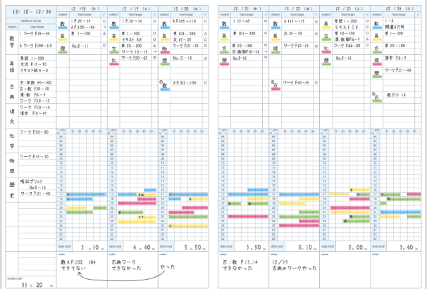 目標や自分のスタイルに合わせて一日タイプや週間タイプなど使い分けることができます。