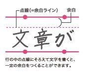 等間隔に並んだドットに加え、行内に余白があることですっきりとした読みやすいノートを作ることができます。送りがなやふりがなが余白に書けるので国語・英語・社会など文系教科におすすめです。